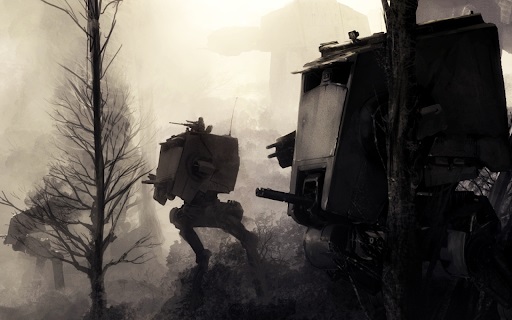 This wallpaper shows the AT-STs and the AT-ATs marching through a burned-down forest. This wallpaper captures the power behind the Empire and the fallout of going to battle with them.